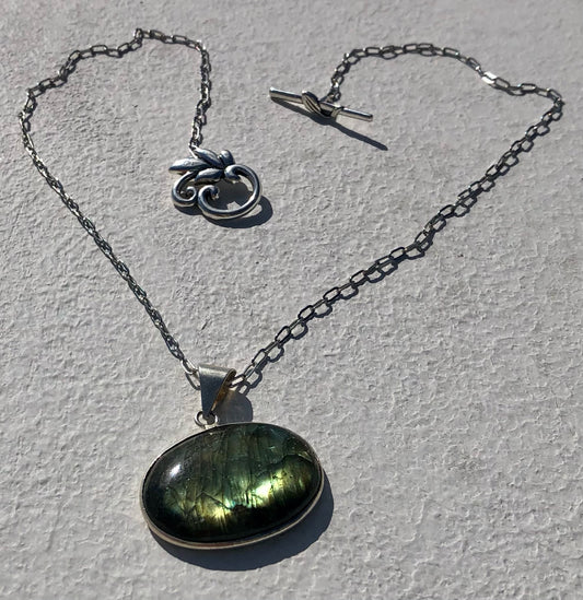 For Katelyn Crawford: Flashy Labradorite Pendant on Labradorite Chain