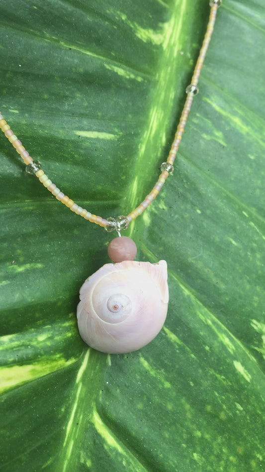 Weathered Sea Shell Strung With Lava & Labradorite Beads