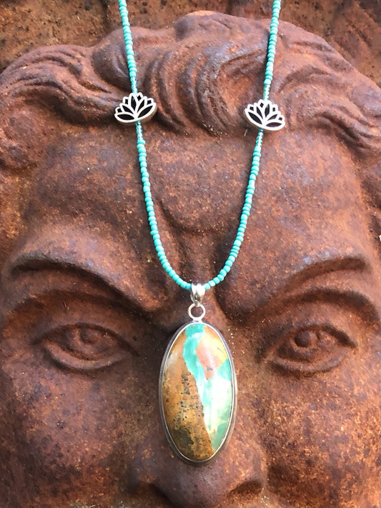 Royston Turquoise Pendant Strung w/ Turquoise Glass Seed Beads
