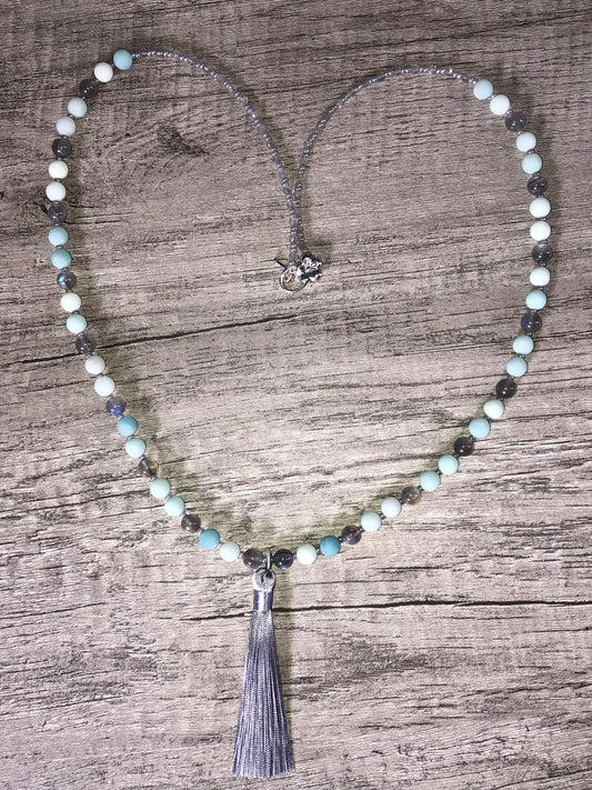 Amazonite Pendant, Clear Crystal New Moon Charm, & Sparkly Glass Seed Beads