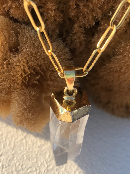 Clear Quartz Point Pendant on 24kt Gold Paperclip Chain