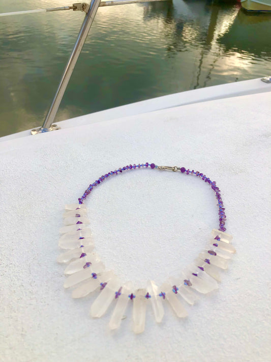 White Coral/Shell Necklace with Double Strand Faceted Turquoise & Grandidierite